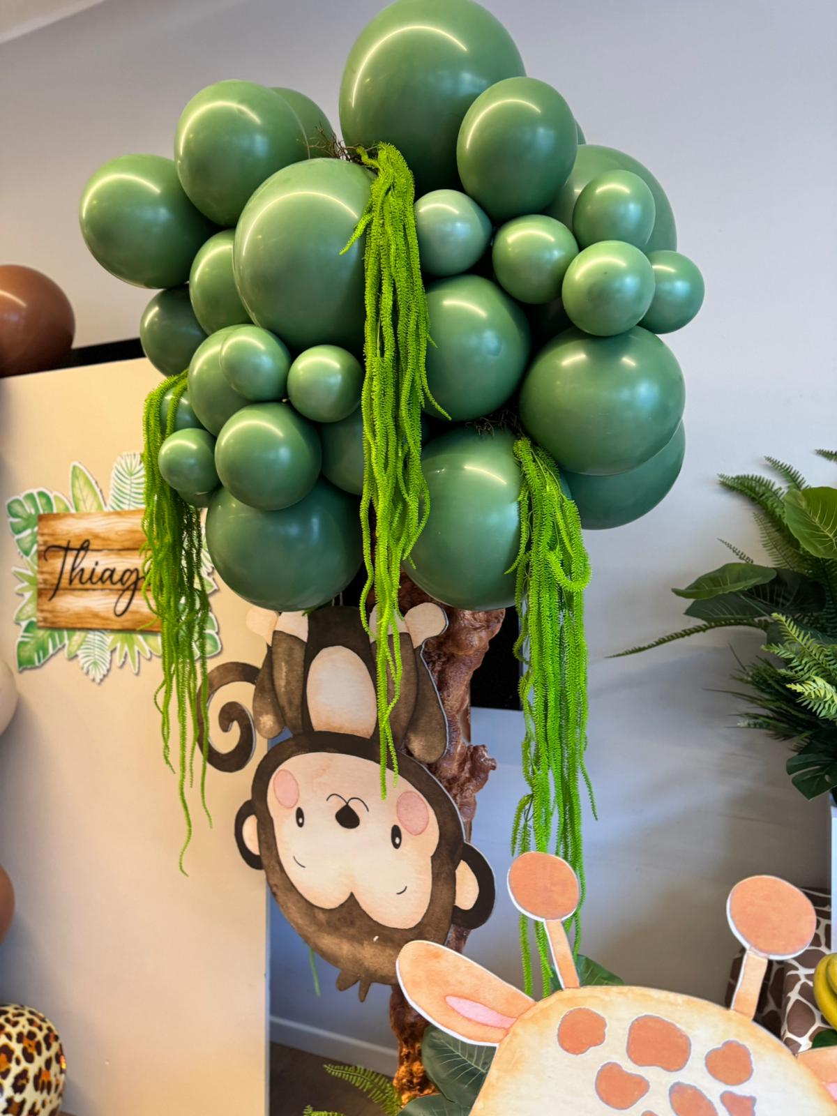 I Dettagli “Effetto Giungla” Per rendere l’ambiente davvero immersivo, abbiamo realizzato un maestoso albero scenografico fatto di palloncini. Per garantirne il massimo realismo e un autentico “effetto giungla”, lo abbiamo arricchito con rami artificiali. A completare la nostra opera scenografica abbiamo aggiunto: